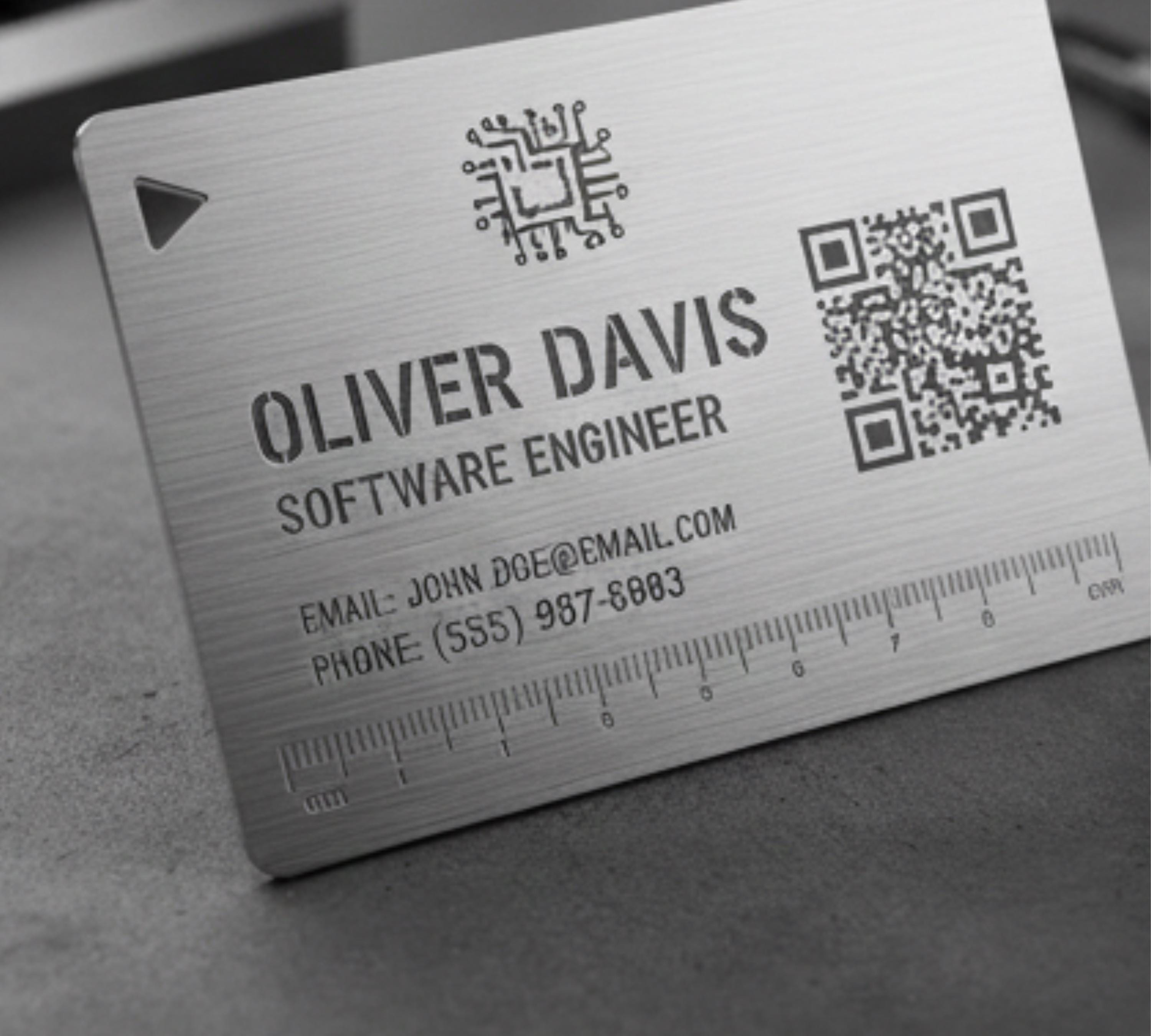 Most "metal" cards are thin, flimsy, and easily bent. Our cards are different. Machined from 2mm thick hard-grade aluminum, this card has the substantial weight and "billet" feel of a high-performance automotive part. Using advanced 2.5D CNC milling, your logo is physically carved into the metal, creating a tactile depth that you can actually feel.